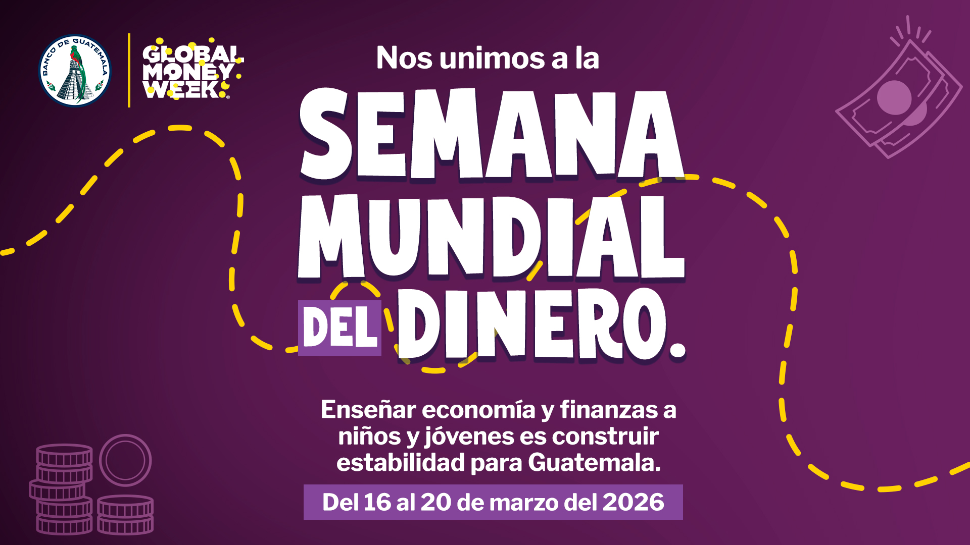 El Banco de Guatemala se une a la Semana Mundial del Dinero, una iniciativa global que promueve la educación financiera entre niños y jóvenes, para que desde temprana edad adquieran conocimientos y habilidades que les permitan tomar decisiones financieras responsables.