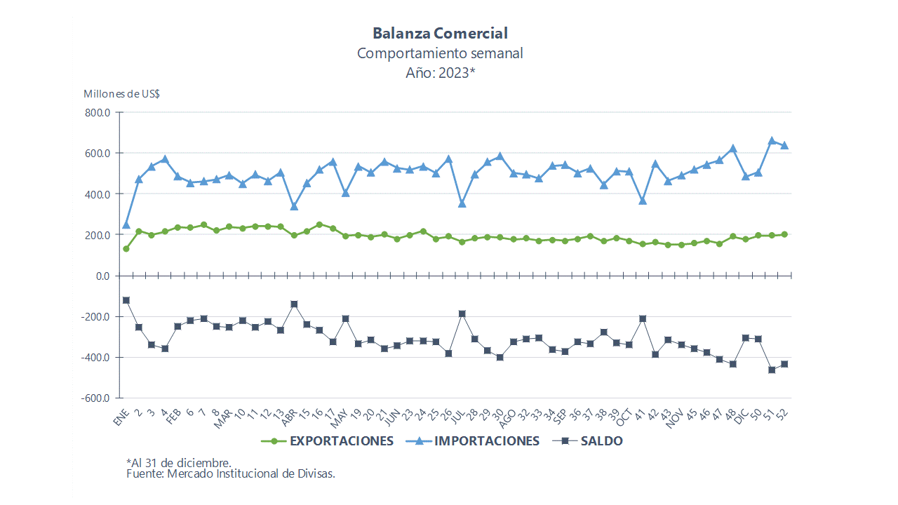 Balanza Comercial, Comportamiento Semanal (gráfica) Semana 52